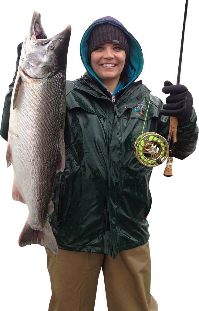 We can provide all of the necessary fly fishing equipment for you. Of course if you have your own fly fishing gear, but all means you are welcome to bring it. If you do choose to bring your own equipment, we recommend using 8 weight rods with mostly floating lines and reels with a good disc drag. Sinking tip lines can be useful in some pools, but are typically not necessary. The Silver Salmon are aggressive and not leader shy so light tippets are unnecessary and typically 12-15# test works very well.